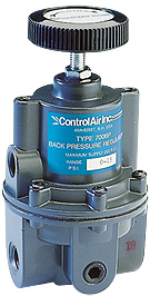 Type 700 Precision Back Pressure Regulator Reliable protection against over pressurization The Type-700BP Back Pressure Regulator is a high flow, highly accurate pneumatic relief valve with an adjustable set point. It's primary function is to provide protection against over pressurization in the downstream portion of a pneumatic system. This precision unit is capable of handling flows up to 50 SCFM. A rolling diaphragm provides the sensitivity that causes the Type-700BP to vent to atmosphere in response to the slightest upstream changes.