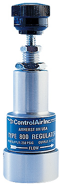 Type 800 Subminiature Precision Pressure Regulator Precise air pressure regulation for application where space is limited The Type-800 is a compact air regulator that supplies precise air pressure control for applications where space is limited. This high quality unit, available in five pressure ranges up to 100 psig (7 BAR), offers the same dependable performance as ControlAir's larger precision air pressure regulators. An oversized supply valve provides the Type 800 with significantly higher flow capacities than competitive units of similar size. The Type 800 is also available with a variety of convenient port sizes and mounting options. Corrosion resistant materials, lightweight construction and low cost, combine to make the Type 800 ideal for any application where space is at a premium.