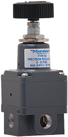 Type 90 Miniature Precision Air Pressure Regulator Compact, lightweight, precise regulation This pressure regulator provides the highest level of regulation accuracy and repeatability available in a compact, lightweight housing. A force balanced pilot control maintains output pressure to within 0.05 psig (3.44 millibar) with minimal drift over time. The Type 90 is ideal for applications that require exact pressure control and substantial flow capacity under variable operating conditions and limited space.